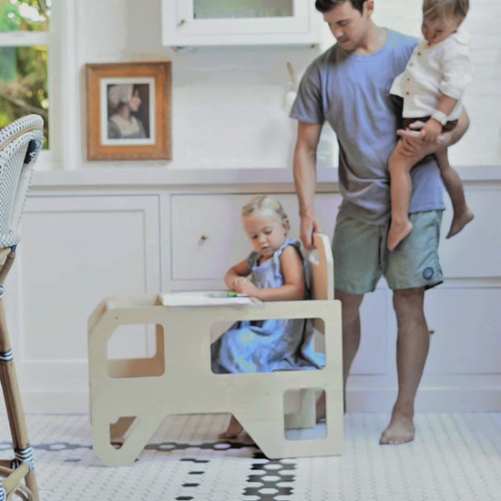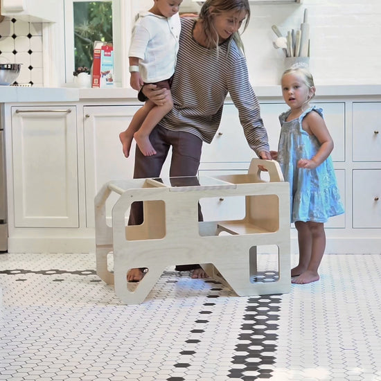 Designed for curious minds and growing hands, the StepDesk transitions effortlessly from a sturdy step stool to a perfectly sized table with a simple 90° rotation. Thoughtfully crafted for children ages 18 months to 4 years, it encourages independence, creativity, and safe exploration in every room.